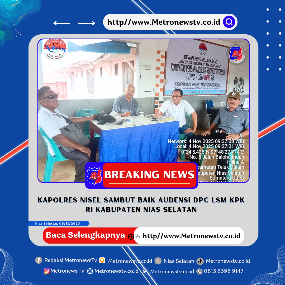 Sumber : https://www.metronewstv.co.id/2025/11/polres-sambut-baik-audiensi-dpc-lsm-kpk.html?m=1